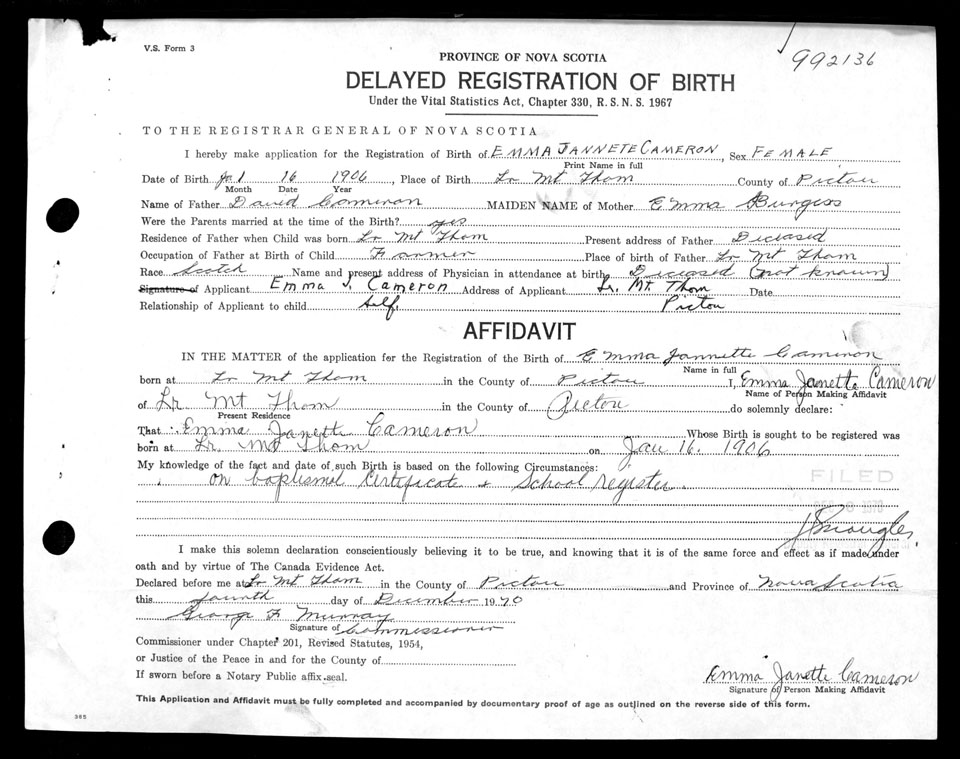 Nova Scotia Archives — https://archives.novascotia.ca/vital-statistics/birth/?ID=203561