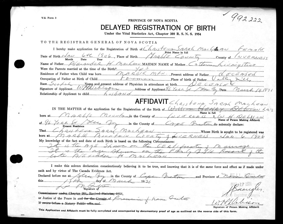 Nova Scotia Archives — https://archives.novascotia.ca/vital-statistics/birth/?ID=203647