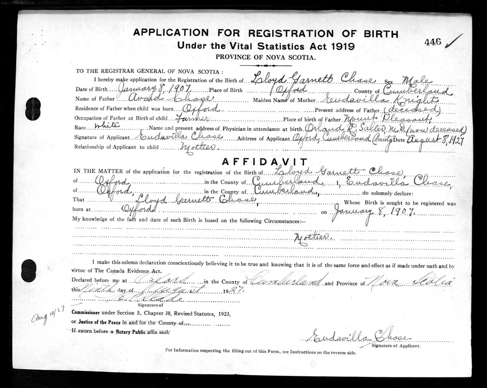 Birth Registration: Year: 1907 number: 69000446
