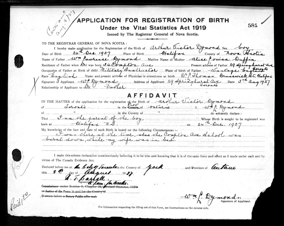 Birth Registration: Year: 1907 number: 69000581