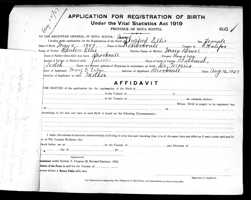 Birth Registration: Year: 1907 number: 69000603