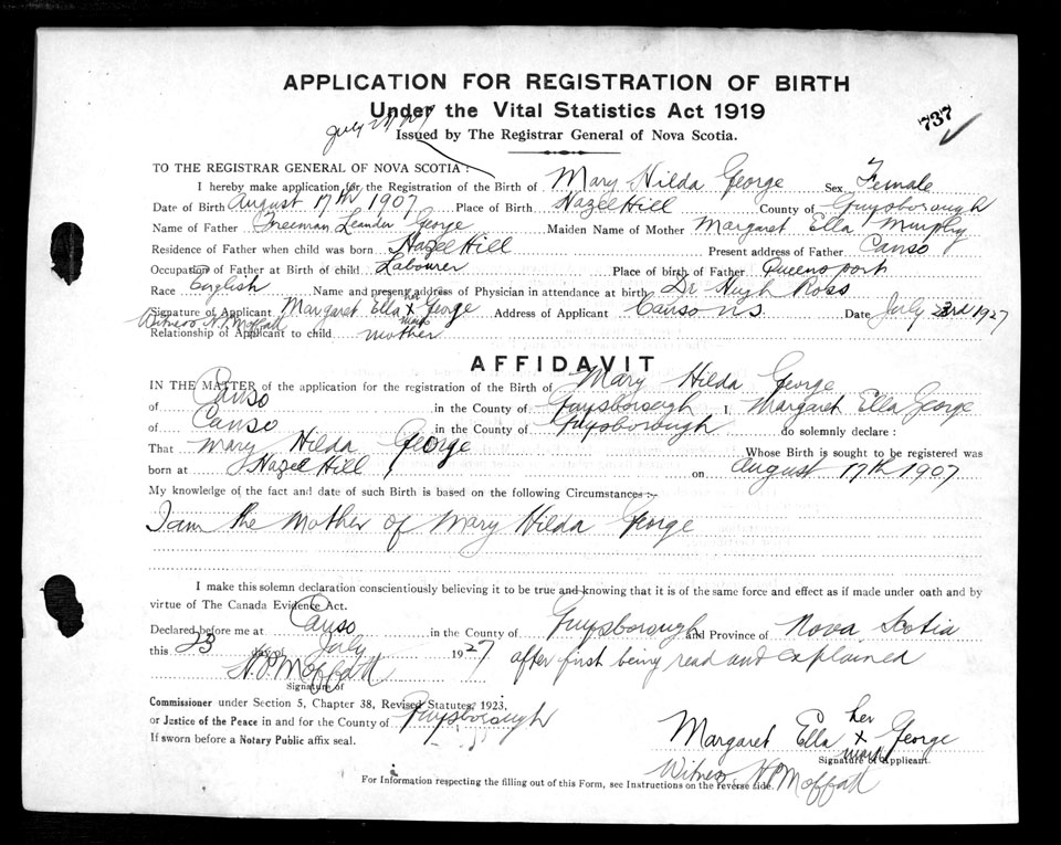 Birth Registration: Year: 1907 number: 69000737