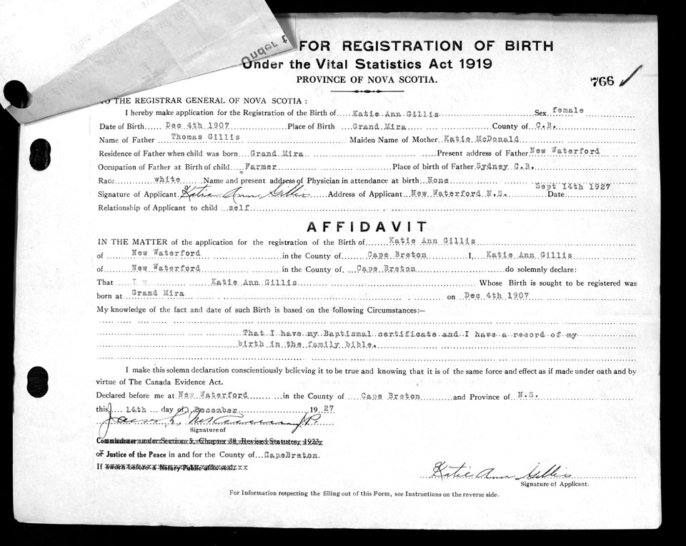 Birth Registration: Year: 1907 number: 69000766