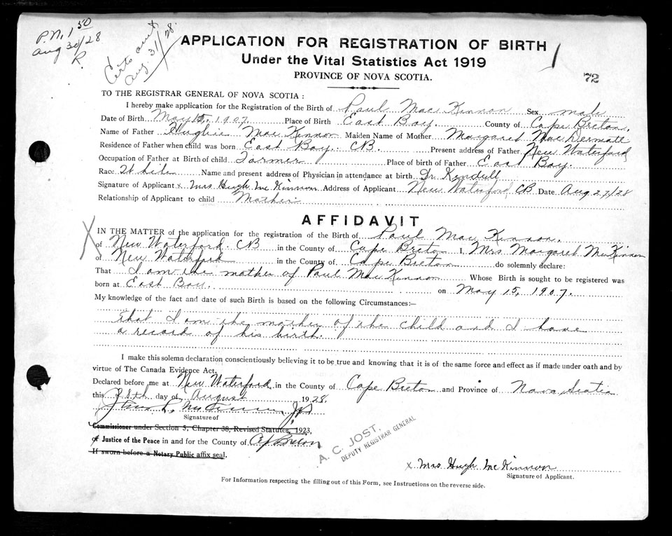 Nova Scotia Archives — https://archives.novascotia.ca/vital-statistics/birth/?ID=205657