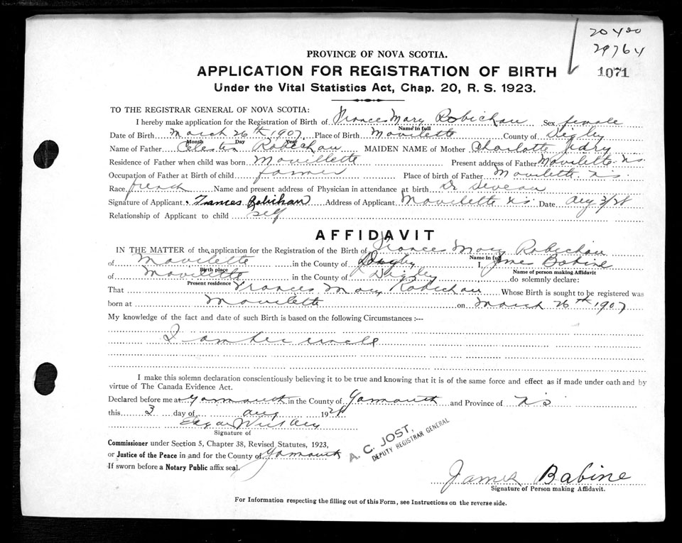 Nova Scotia Archives — https://archives.novascotia.ca/vital-statistics/birth/?ID=205759