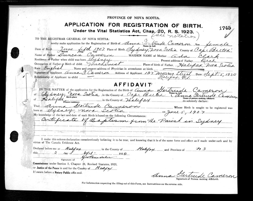 Nova Scotia Archives — https://archives.novascotia.ca/vital-statistics/birth/?ID=206381