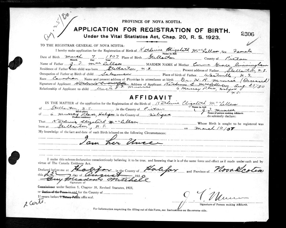 Nova Scotia Archives — https://archives.novascotia.ca/vital-statistics/birth/?ID=206426