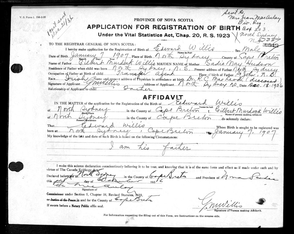 Nova Scotia Archives — https://archives.novascotia.ca/vital-statistics/birth/?ID=206770