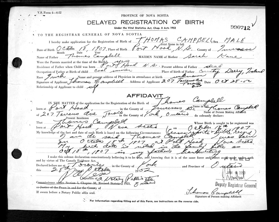 Birth Registration: Year: 1907 number: 99000712