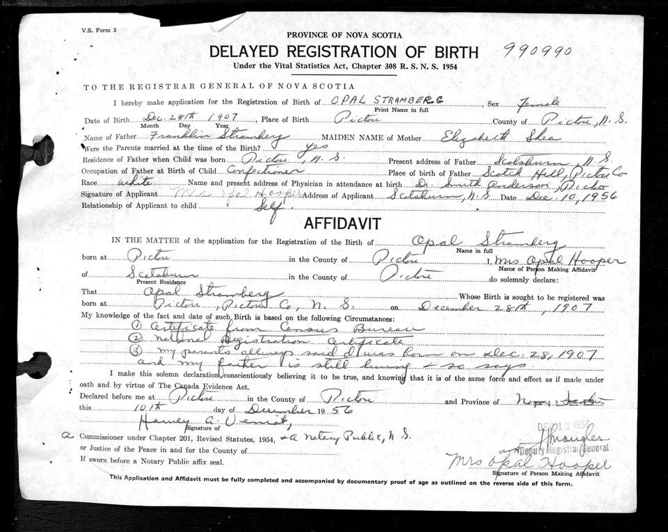 Birth Registration: Year: 1907 number: 99000990