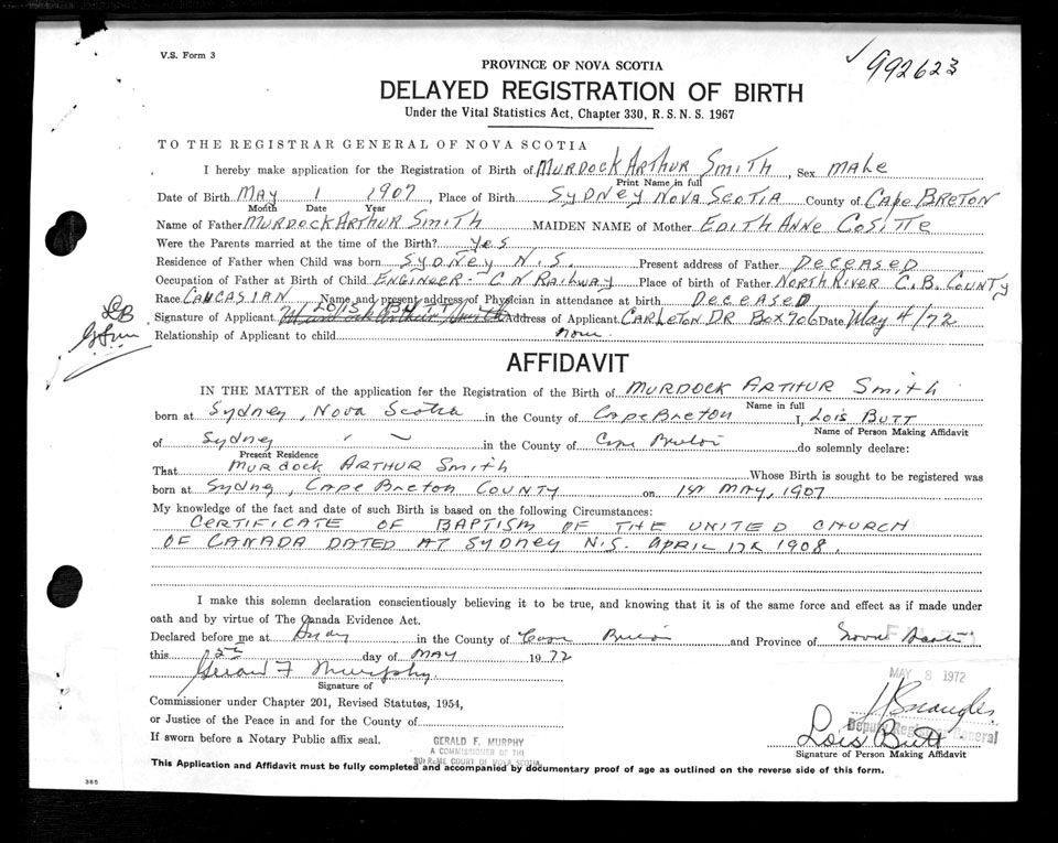 Birth Registration: Year: 1907 number: 99200623