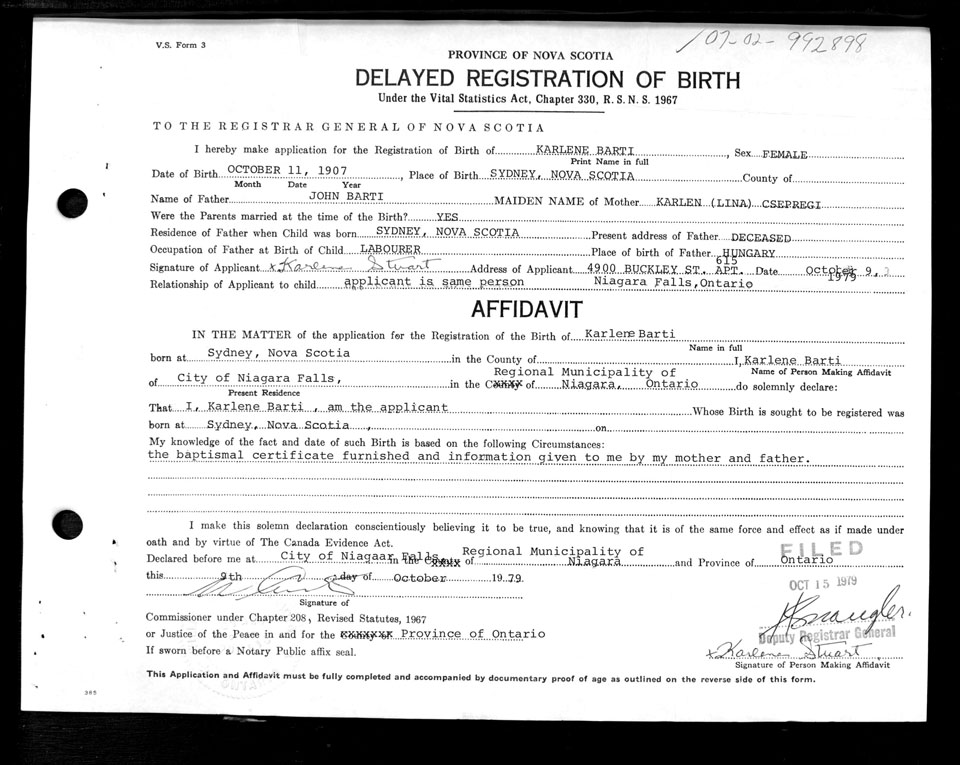 Birth Registration: Year: 1907 number: 99200898