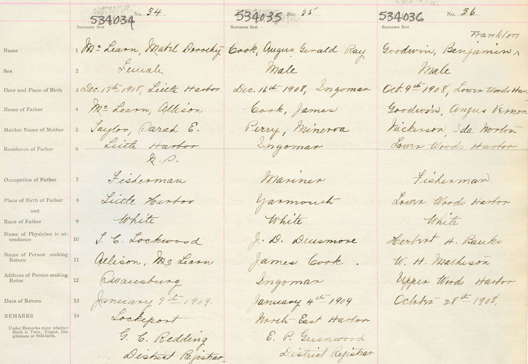 Female Birth Registration: Year: 1908 number: 53400034