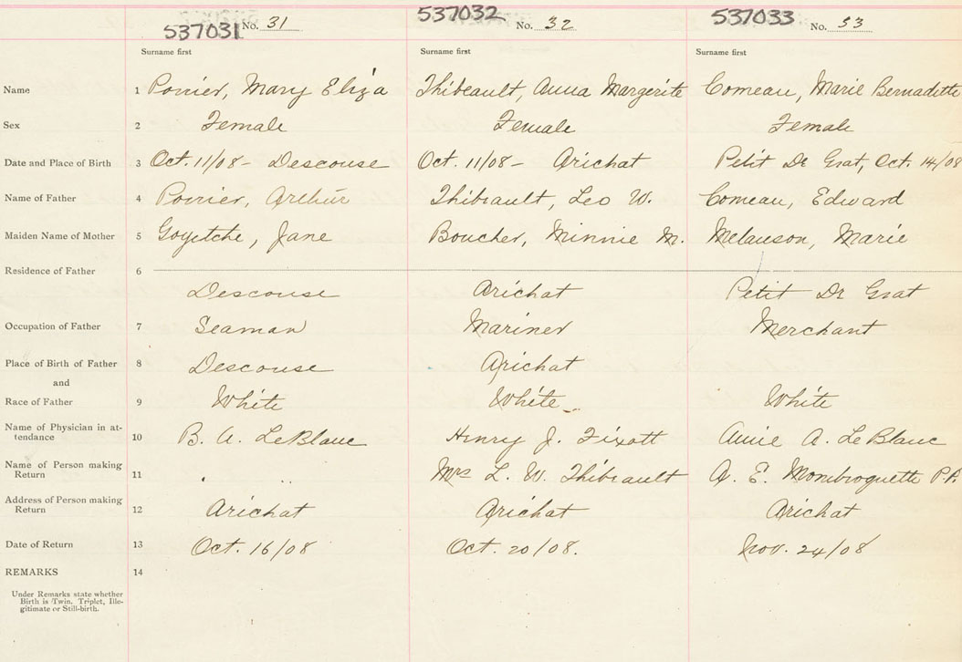 Female Birth Registration: Year: 1908 number: 53700031