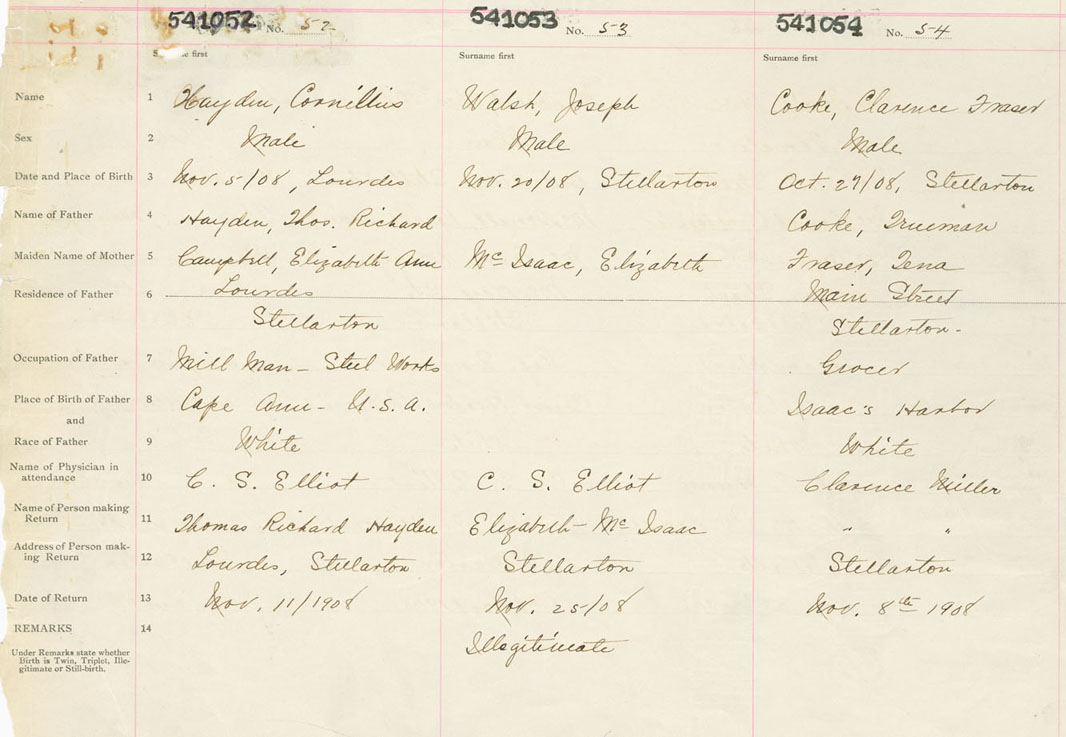Male Birth Registration: Year: 1908 number: 54100052