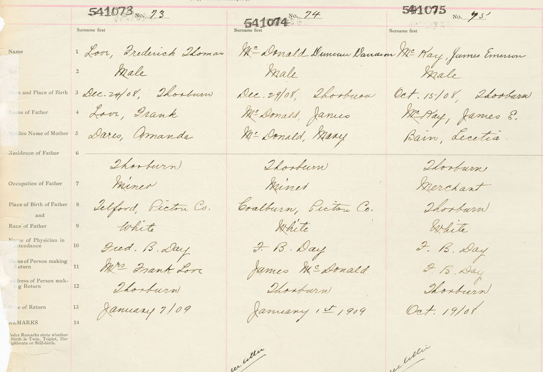 Male Birth Registration: Year: 1908 number: 54100073