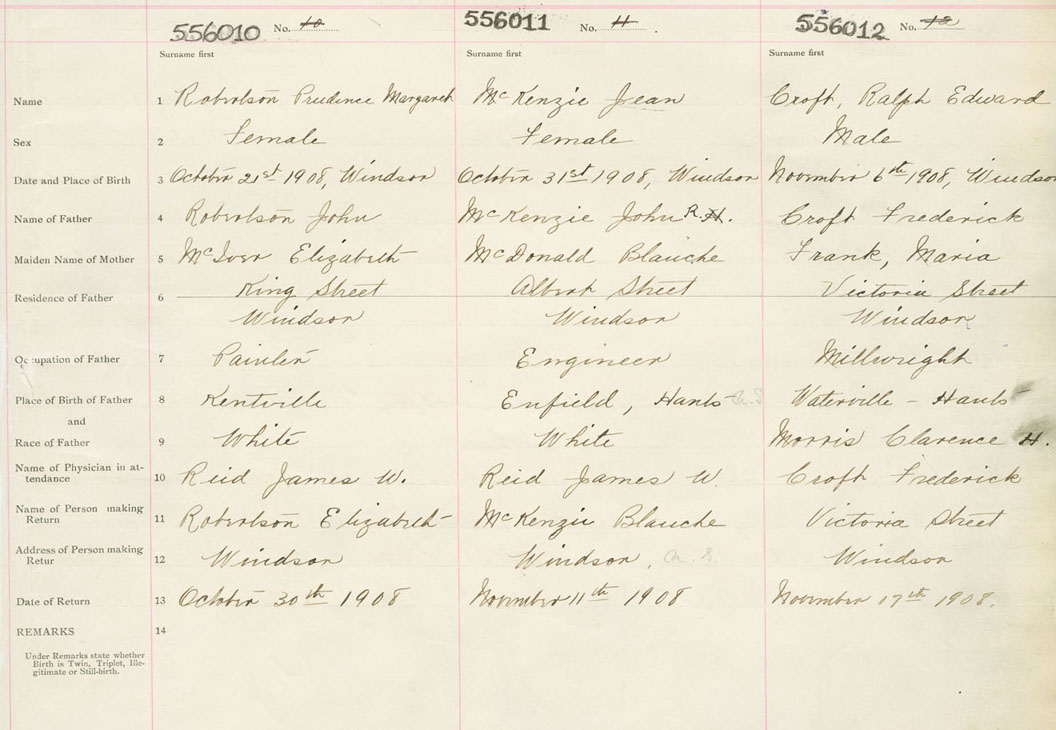 Female Birth Registration: Year: 1908 number: 55600010
