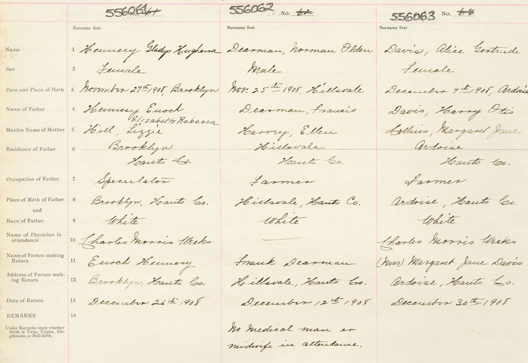 Female Birth Registration: Year: 1908 number: 55600061