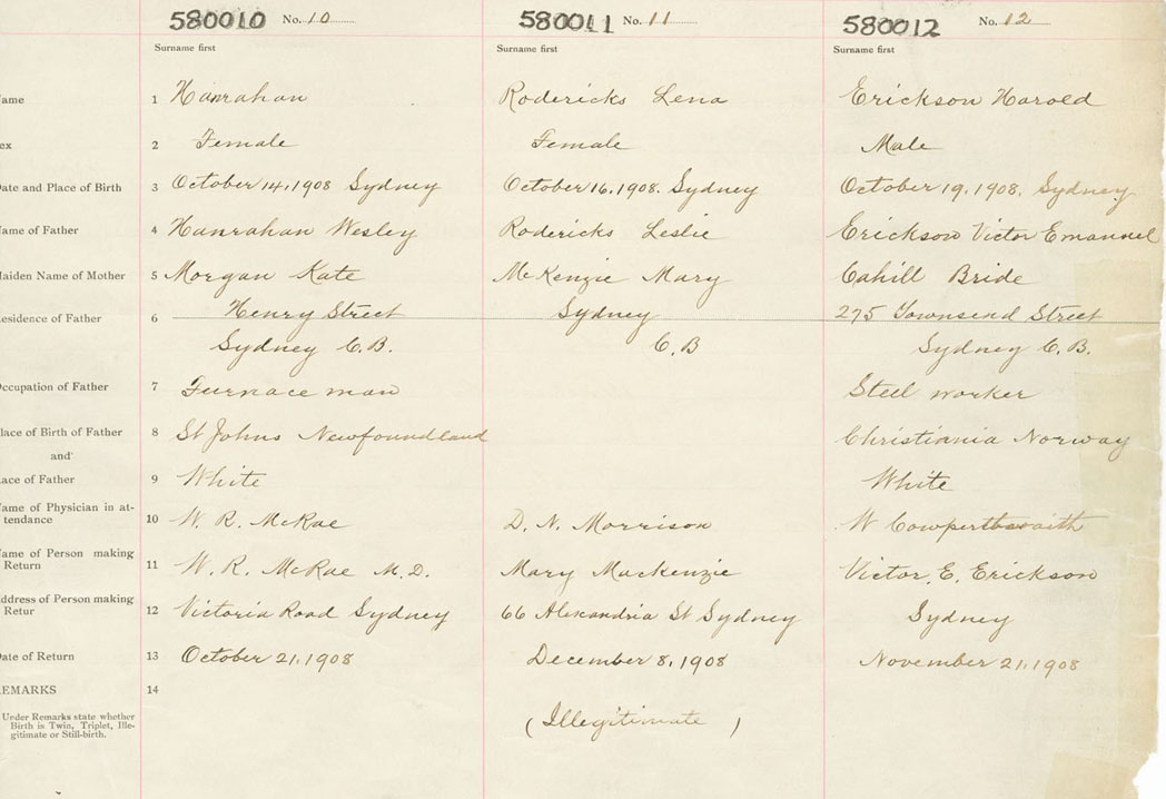 Female Birth Registration: Year: 1908 number: 58000010