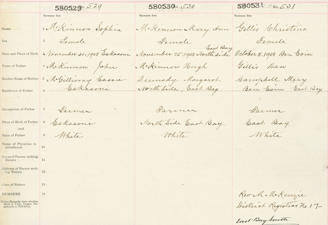 Female Birth Registration: Year: 1908 number: 58000529