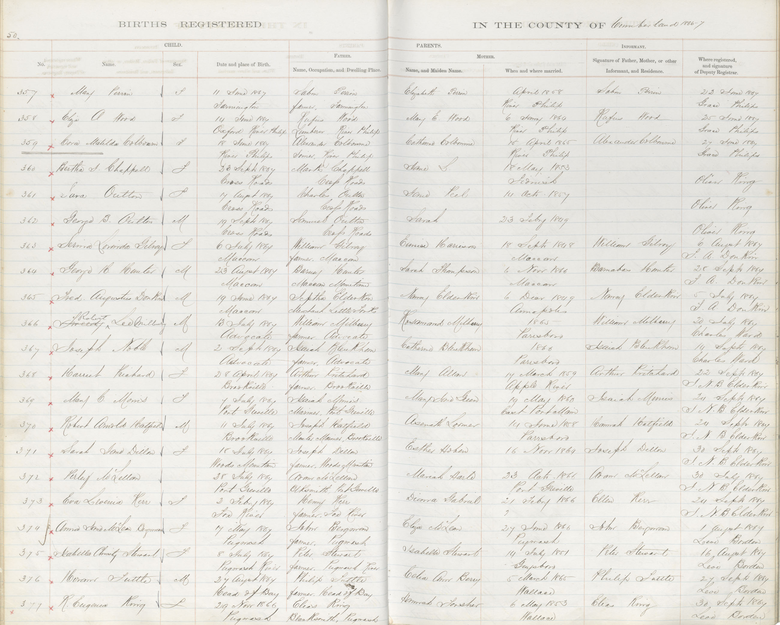 Birth Registration: Year: 1866 book: 1805 page: 50 number: 377