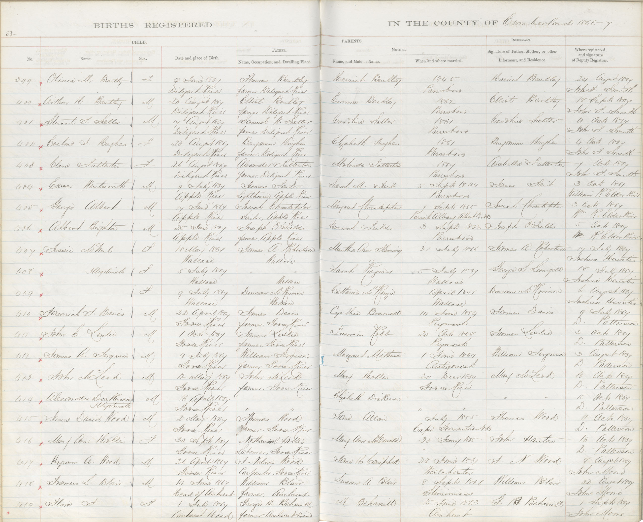 Birth Registration: Year: 1867 book: 1805 page: 52 number: 419