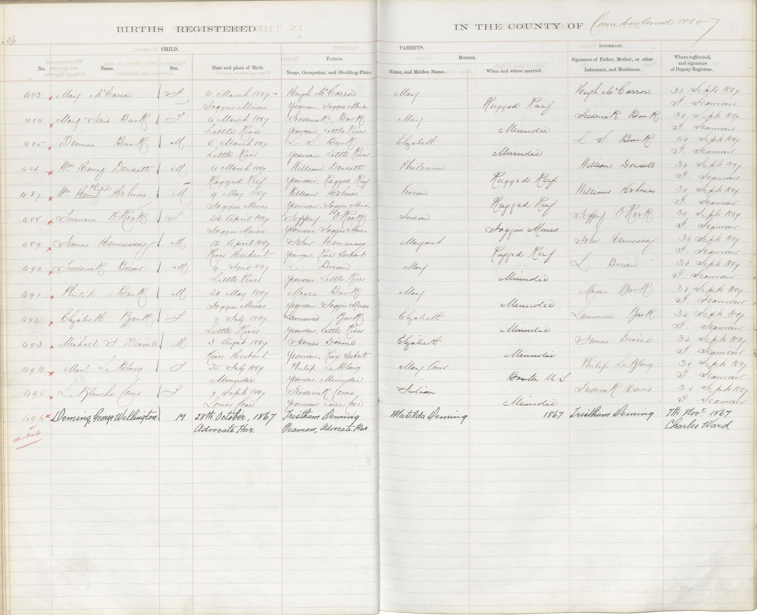 Birth Registration: Year: 1867 book: 1805 page: 56 number: 483