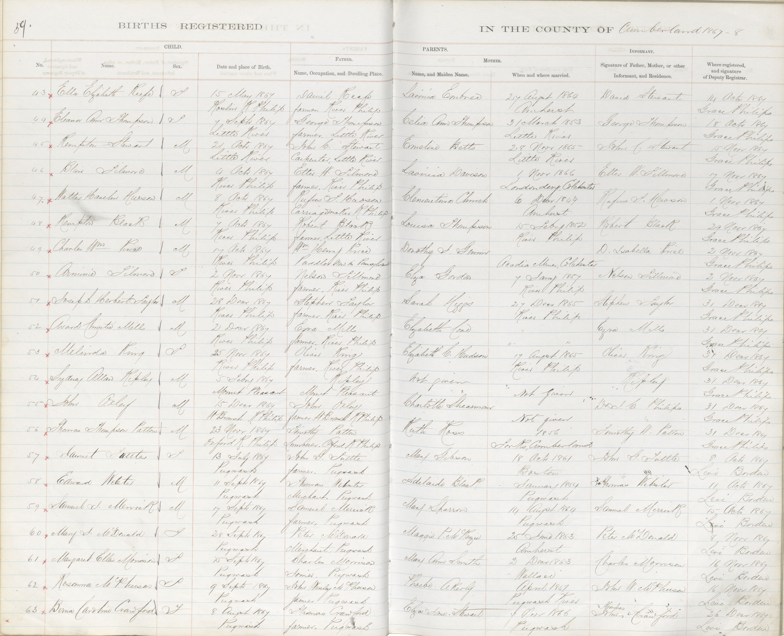 Birth Registration: Year: 1867 book: 1805 page: 59 number: 43