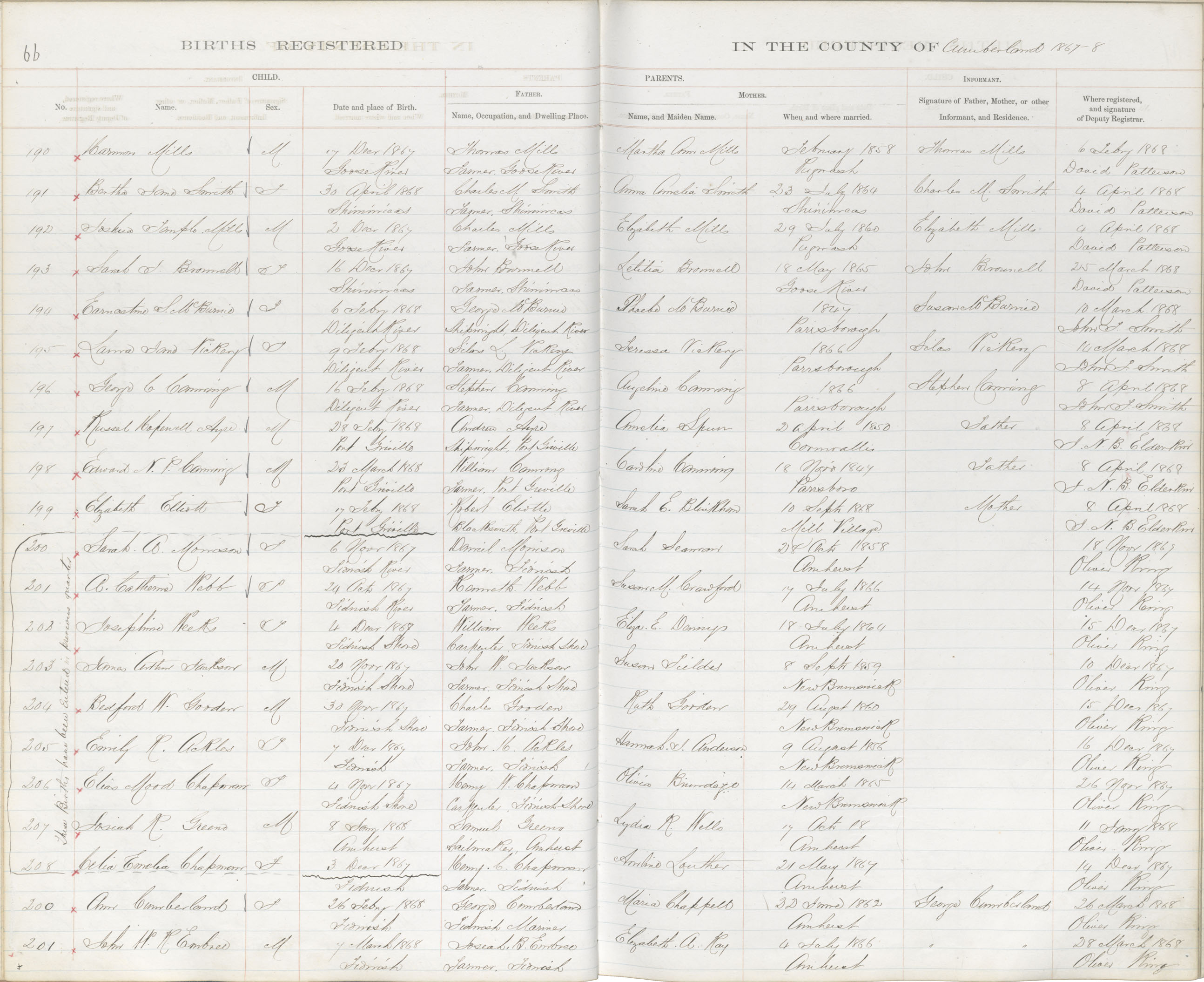 Birth Registration: Year: 1867 book: 1805 page: 66 number: 190