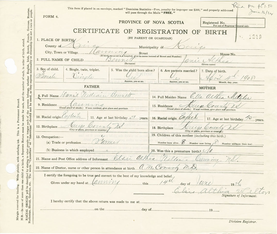 Nova Scotia Archives — https://archives.novascotia.ca/vital-statistics/birth/?ID=224023