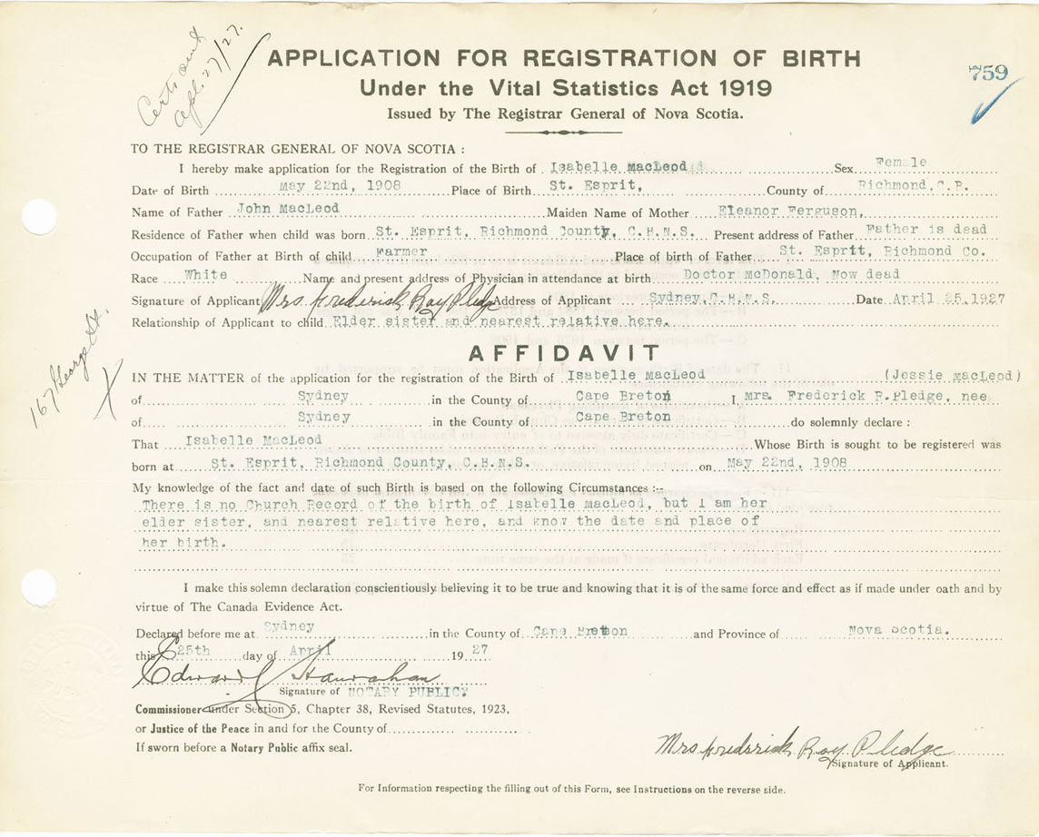 Nova Scotia Archives — https://archives.novascotia.ca/vital-statistics/birth/?ID=224561