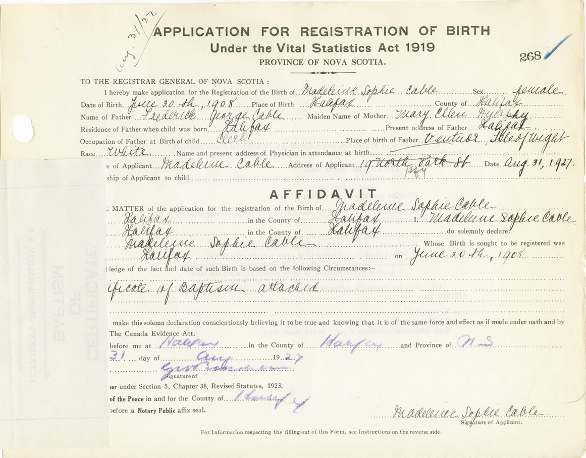 Nova Scotia Archives — https://archives.novascotia.ca/vital-statistics/birth/?ID=224616