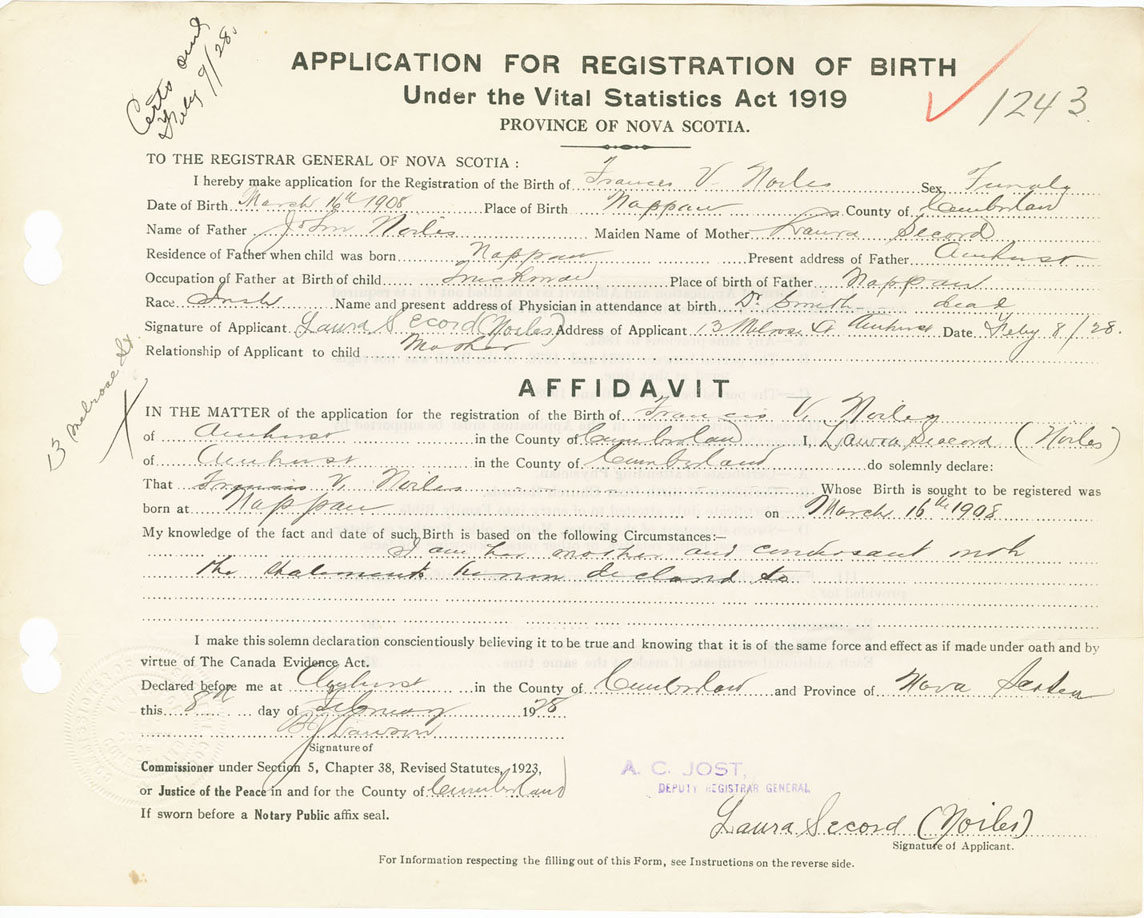 Nova Scotia Archives — https://archives.novascotia.ca/vital-statistics/birth/?ID=224989