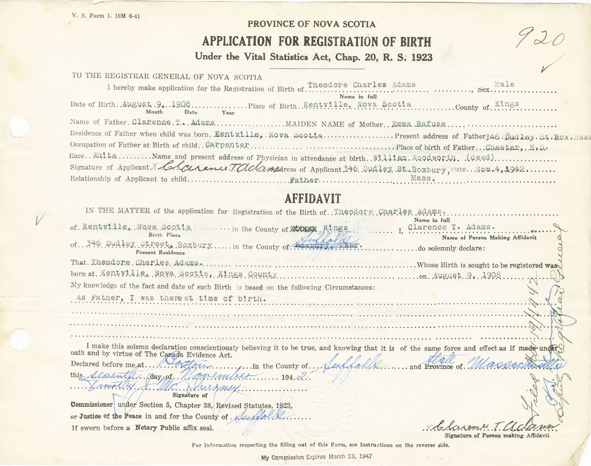 Nova Scotia Archives — https://archives.novascotia.ca/vital-statistics/birth/?ID=226320