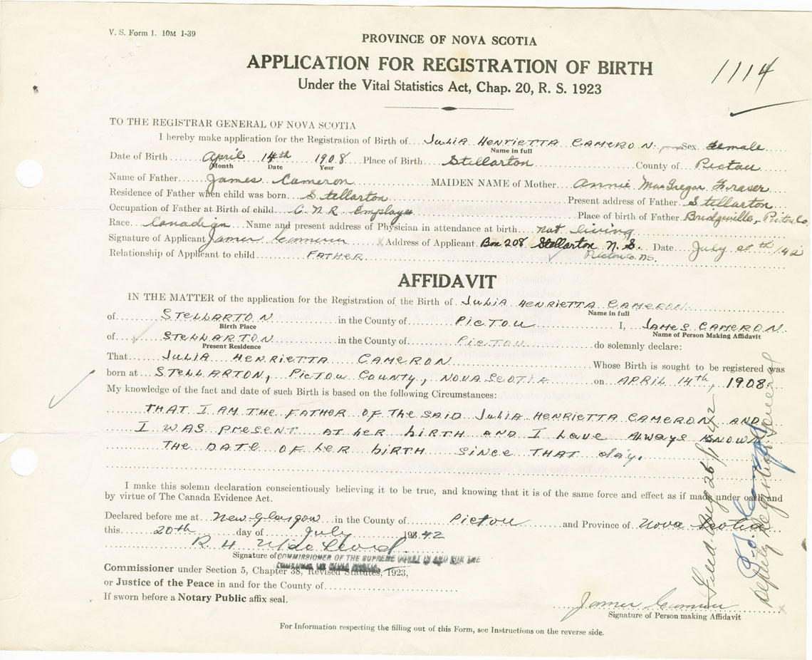 Nova Scotia Archives — https://archives.novascotia.ca/vital-statistics/birth/?ID=226325