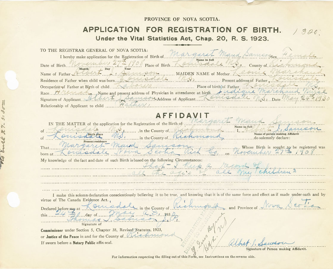 Nova Scotia Archives — https://archives.novascotia.ca/vital-statistics/birth/?ID=226589