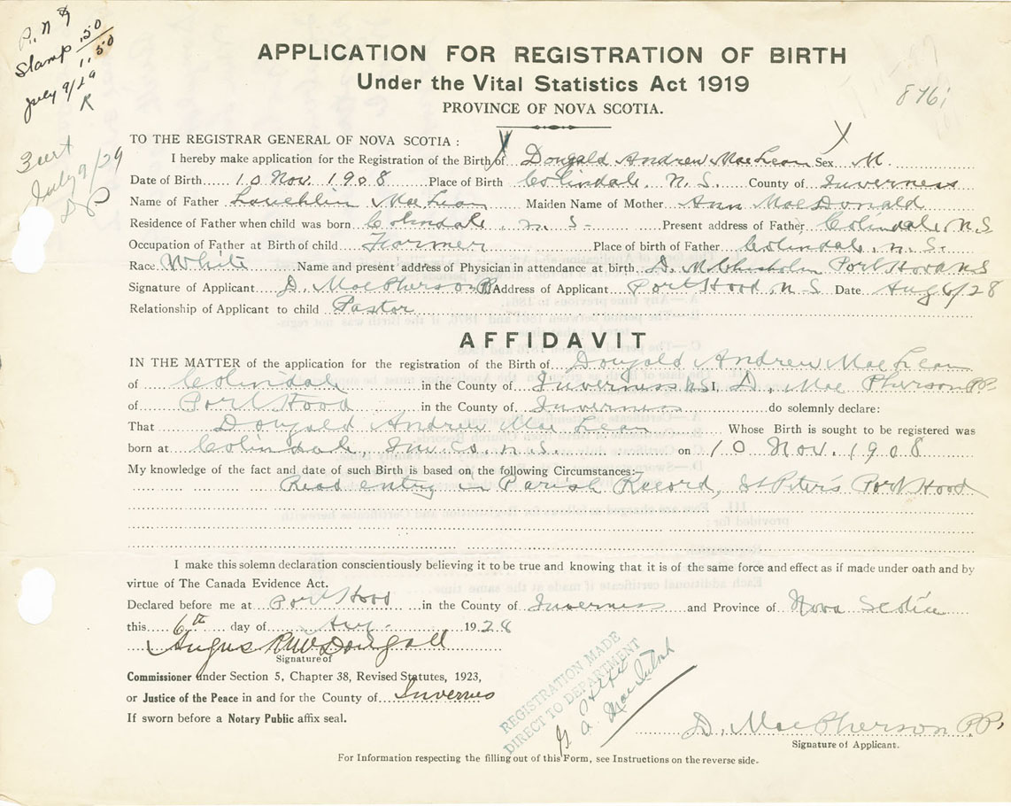 Nova Scotia Archives — https://archives.novascotia.ca/vital-statistics/birth/?ID=226609