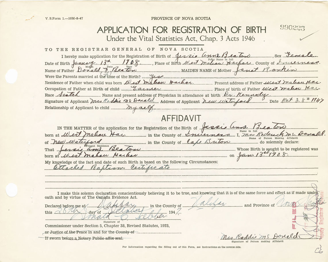 Nova Scotia Archives — https://archives.novascotia.ca/vital-statistics/birth/?ID=226974