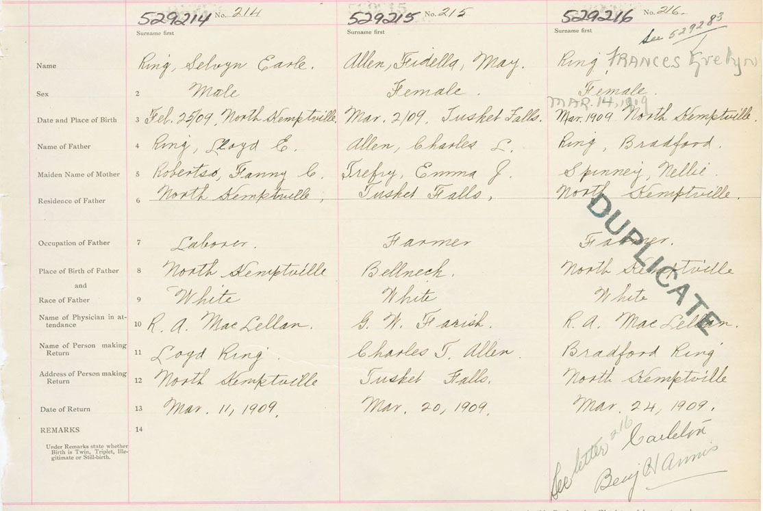 Male Birth Registration: Year: 1909 number: 52900214