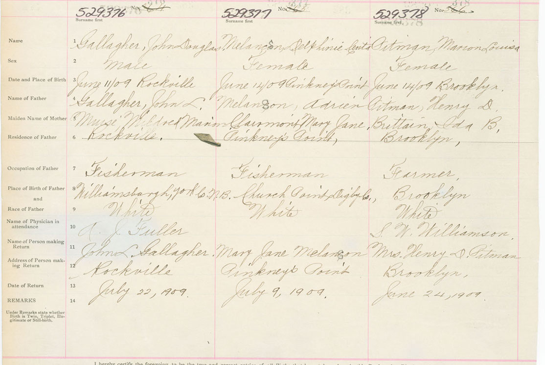 Female Birth Registration: Year: 1909 number: 52900378
