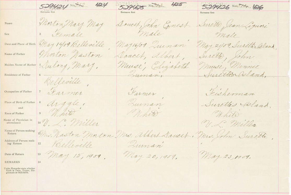 Male Birth Registration: Year: 1909 number: 52900426