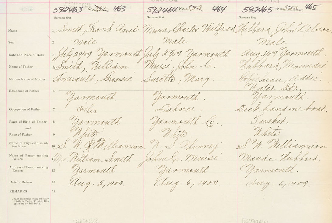 Male Birth Registration: Year: 1909 number: 52900465