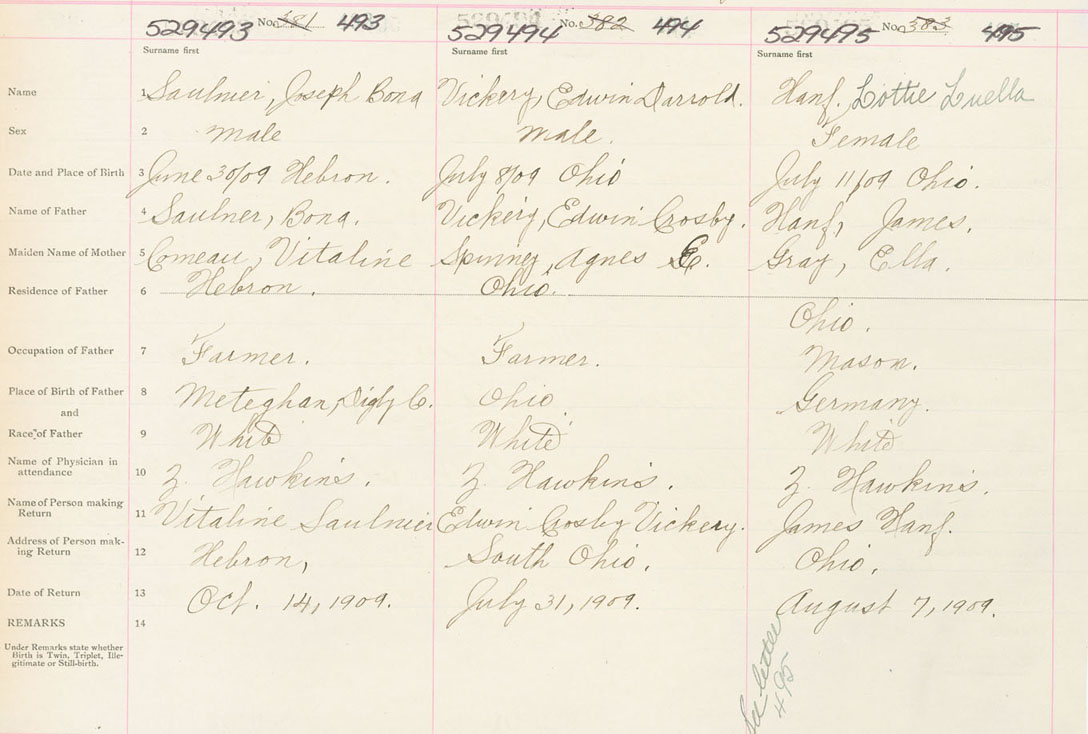Female Birth Registration: Year: 1909 number: 52900495