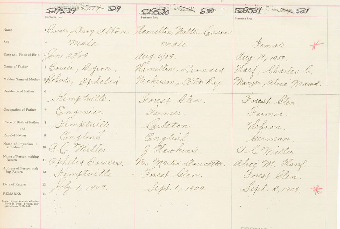 Male Birth Registration: Year: 1909 number: 52900529