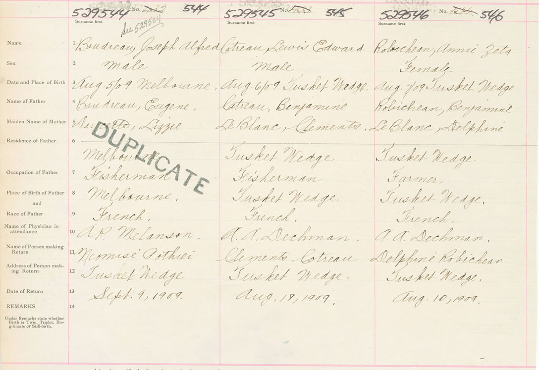 Male Birth Registration: Year: 1909 number: 52900544