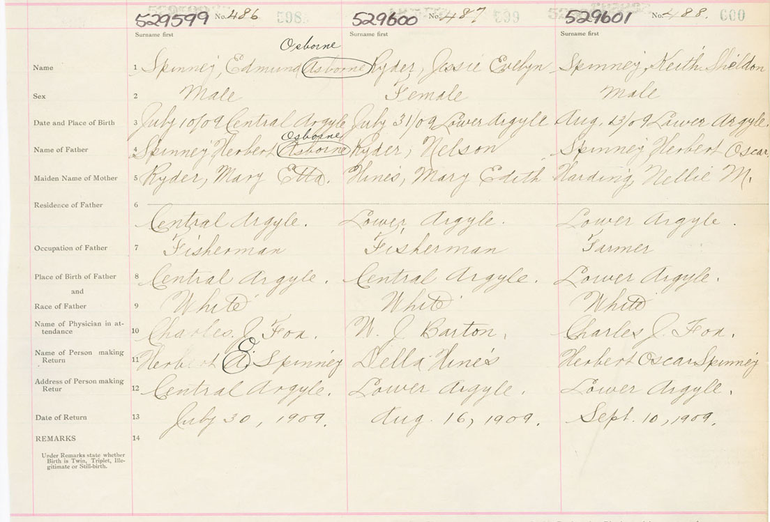 Male Birth Registration: Year: 1909 number: 52900599