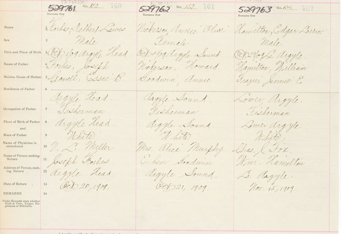 Male Birth Registration: Year: 1909 number: 52900761