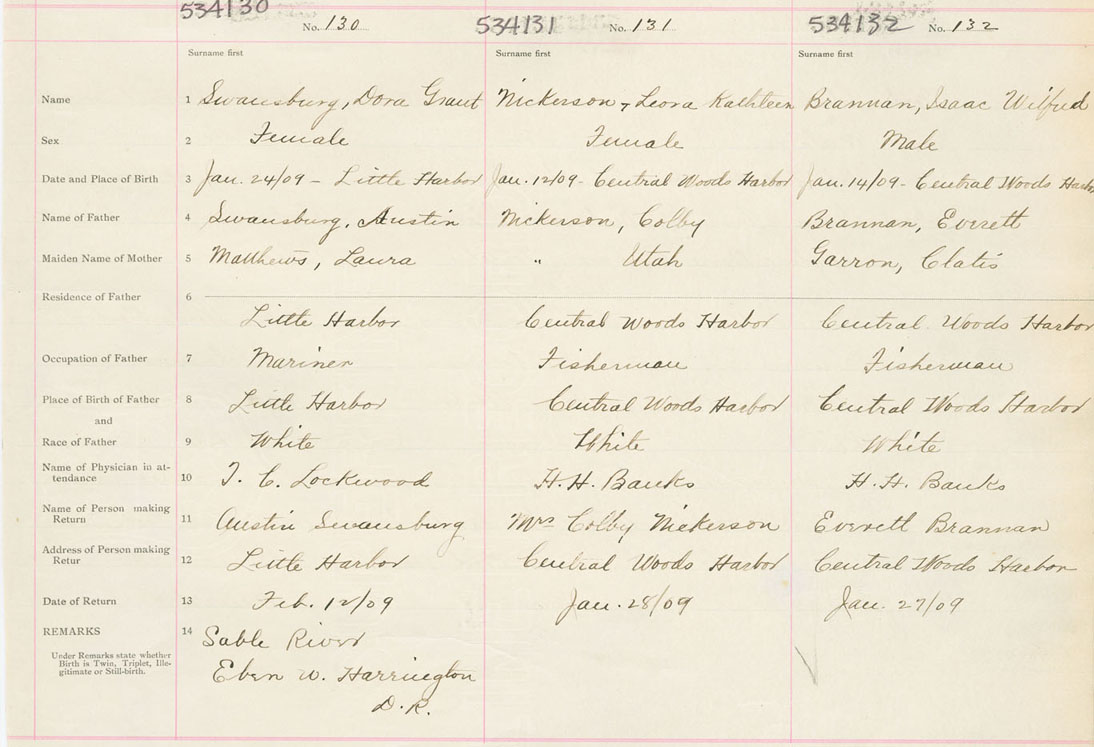 Female Birth Registration: Year: 1909 number: 53400130