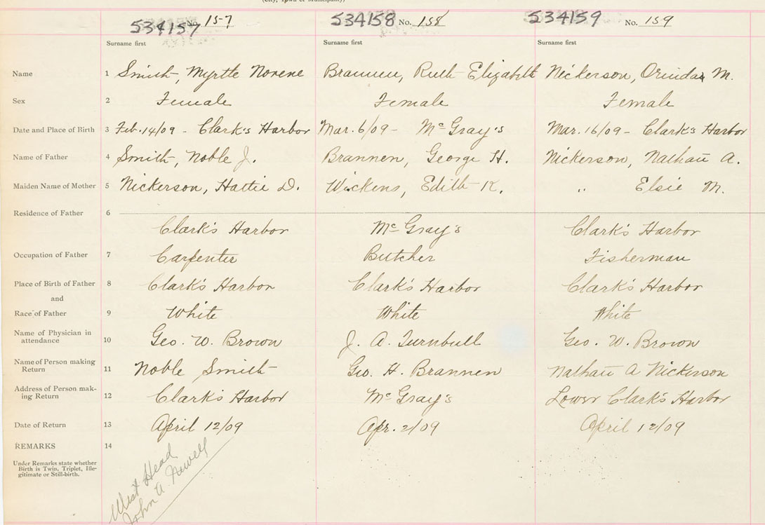 Female Birth Registration: Year: 1909 number: 53400157
