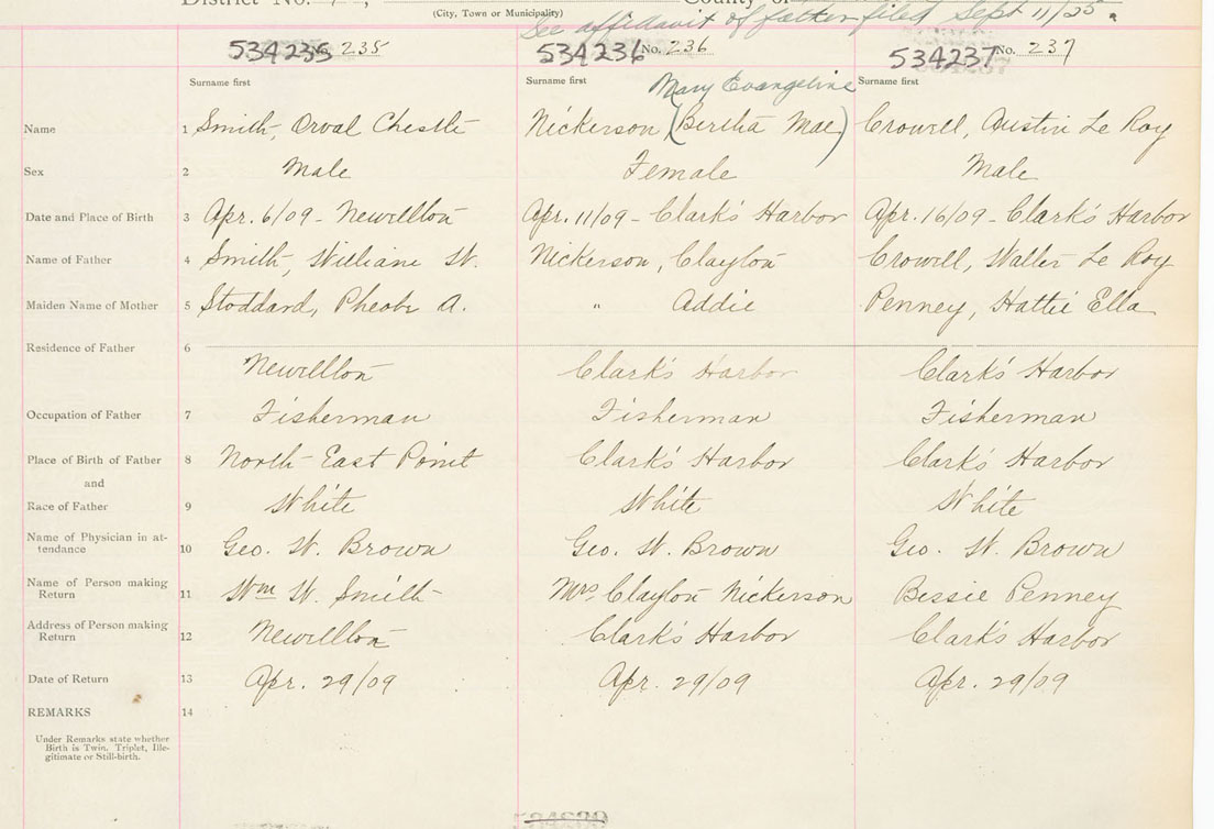 Male Birth Registration: Year: 1909 number: 53400235